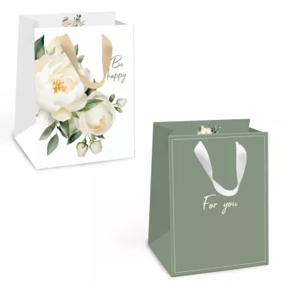 Пакет бумажный "Пионы" 14х19х9см, 2 дизайна