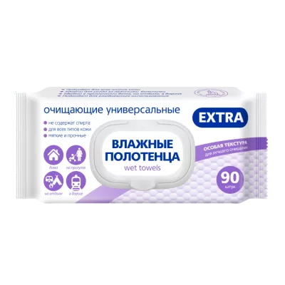 Влажные полотенца универсальные "Экстра" с клапаном 90шт.