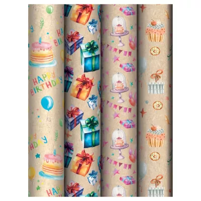 Упаковочная бумага "С Днем рождения" 100х70см, 4в.