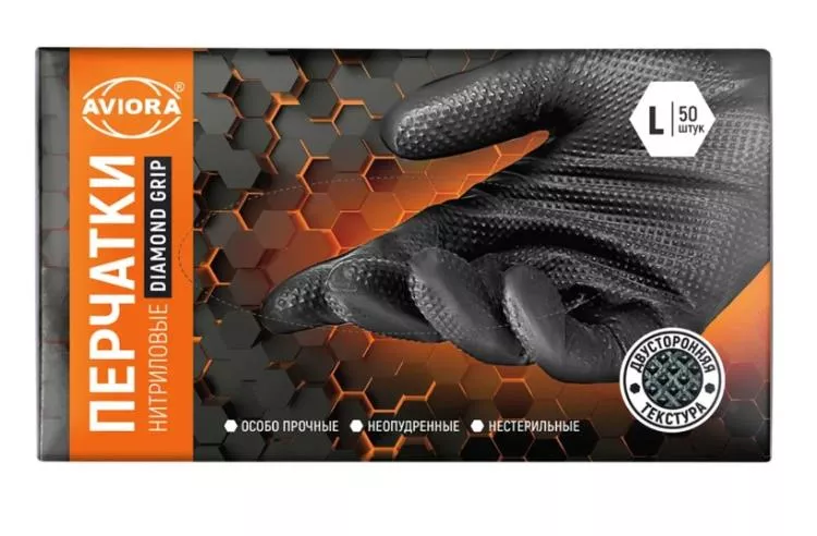 "AVIORA" Набор перчаток нитриловых "Алмазный хват" 50шт., размер L