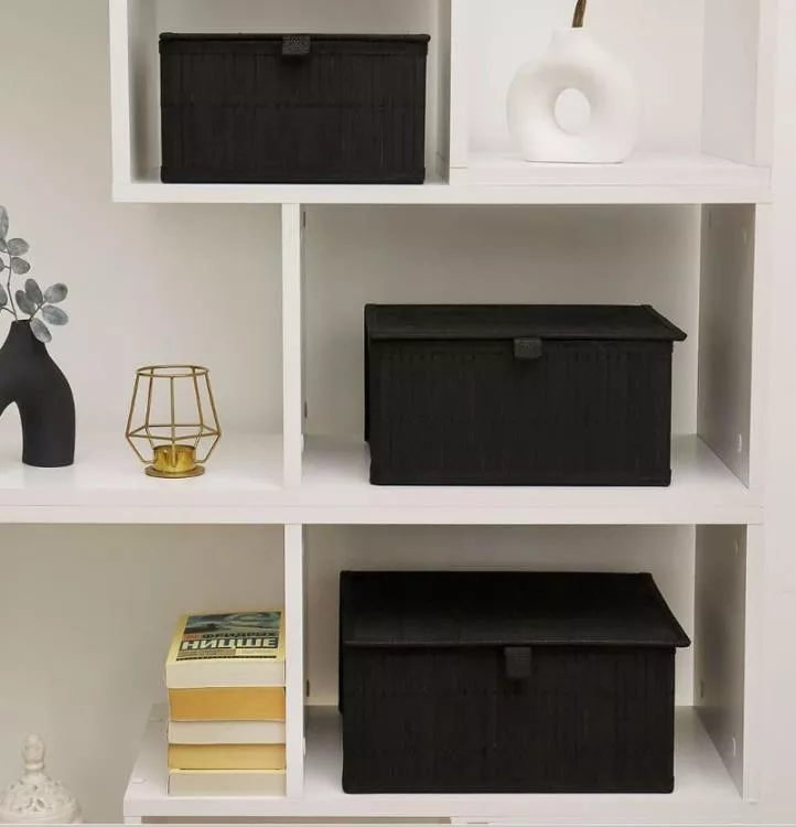 "Бамбук" Корзина стеллажная с крышкой 32х25х15см, цв.черный