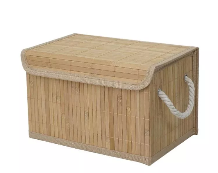 "Бамбук" Корзина стеллажная с крышкой и ручками 33х23х20см, цв.бежевый