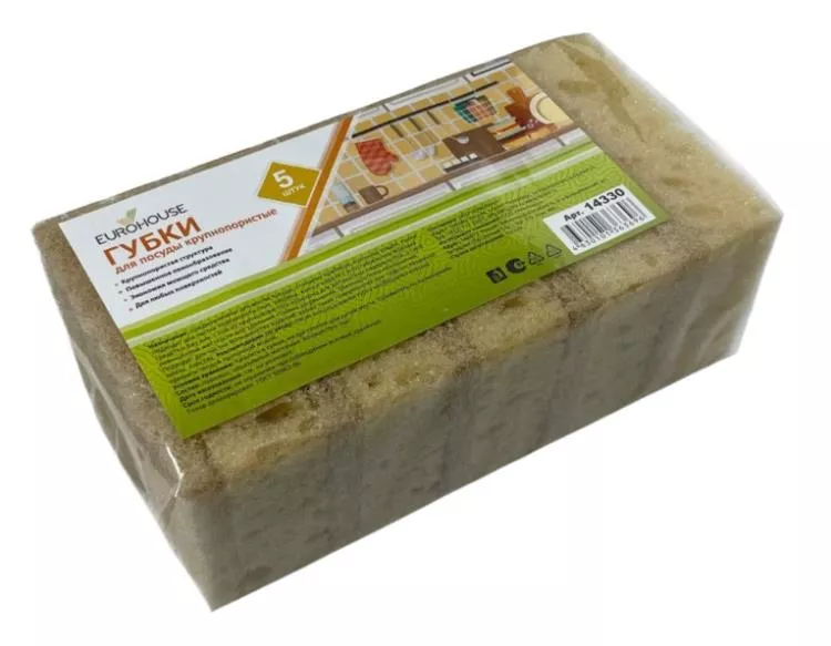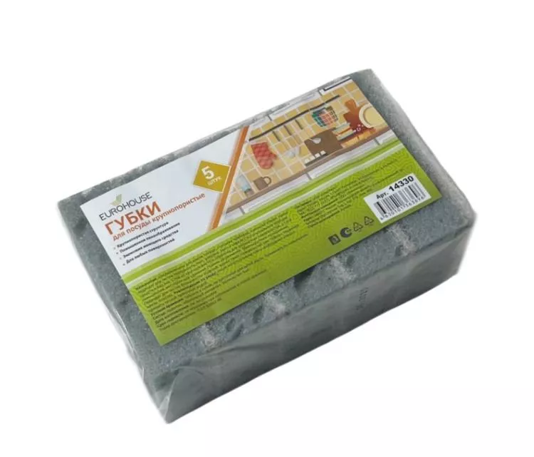 "EuroHouse" Набор губок для посуды крупнопористых 5шт. 8,6х6,2х3см, 2цв.
