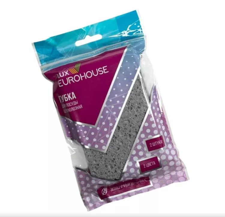 "EuroHouse" Набор губок для посуды целлюлозных 2шт. 12х8х1см, цв.черный/серый