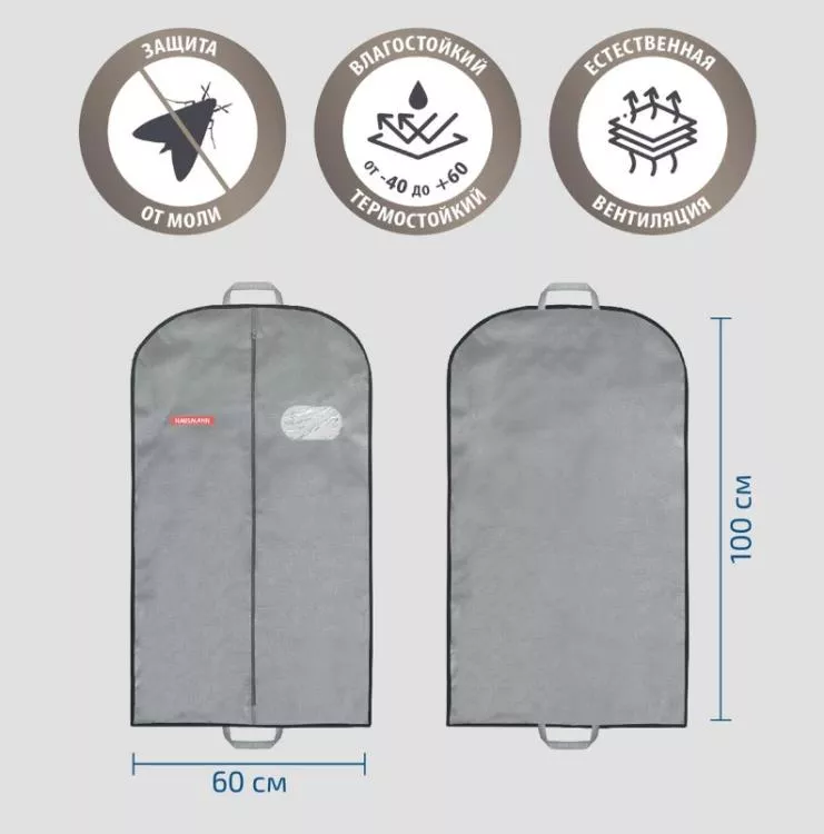 "HAUSMANN" Чехол для одежды "Monocolor" 60х100х10см, цв.серый