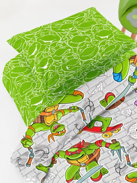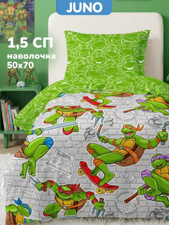 "Juno" Комплект постельного белья "Черепашки-ниндзя" 1,5сп, 50х70см, поплин