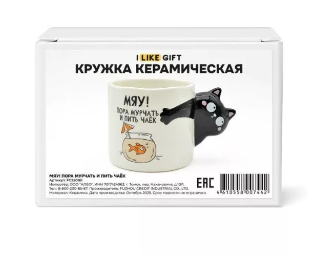 Кружка "Пора мурчать и пить чаек" 460мл, цв.белый, в п.у