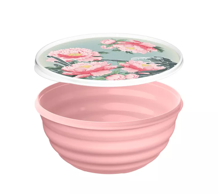 "Latina" Салатник с крышкой "Сад пионов" 2,1л, цв.розовый