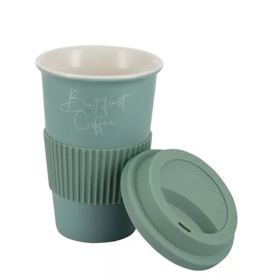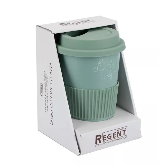 "Linea" Di" Стакан с силиконовой крышкой и манжетой 370мл, цв.шалфейный