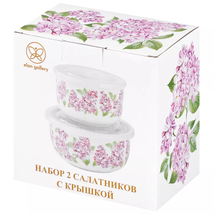 "Сирень" Набор салатников с крышками 2шт. 500мл; 300мл.