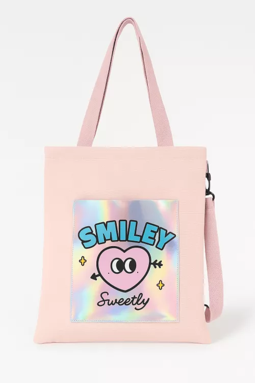 Сумка-шоппер "Смайлик" 37х34см, цв.розовый