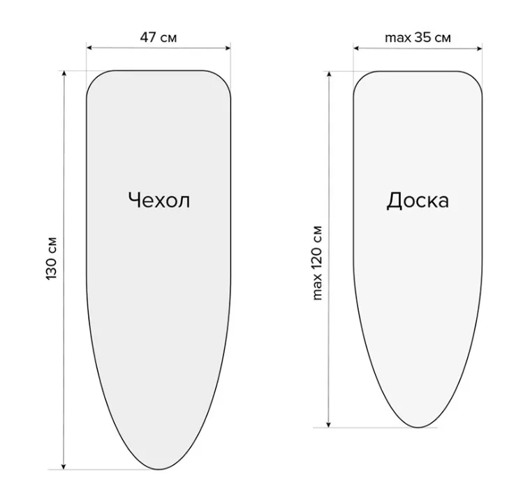 Подходит для гладильных досок размером от 126*38 см до 136*46 см.