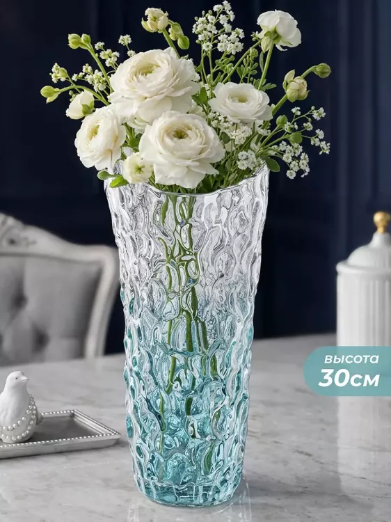 Ваза "Морская волна" 30см, цв.голубой