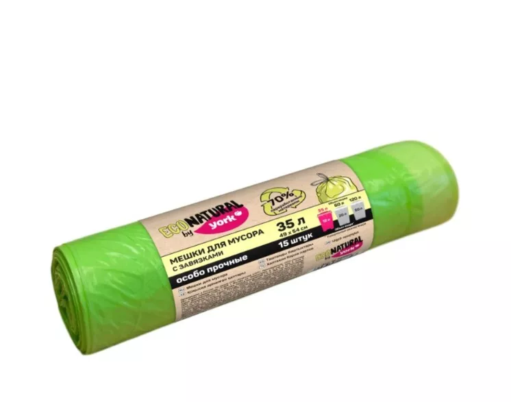 "YORK"ЭКО Натурал" Мешки для мусора с тесьмой 35л, 15шт. 19мкм