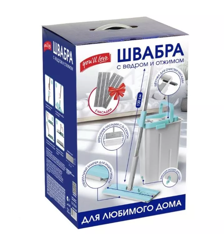 "You'll love" Комплект для влажной уборки с механизмом отжима и 2-мя насадками, 9л, 4пр.